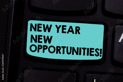 Word writing text New Year New Opportunities. Business concept for Fresh start Motivation inspiration 365 days Keyboard key Intention to create computer message pressing keypad idea