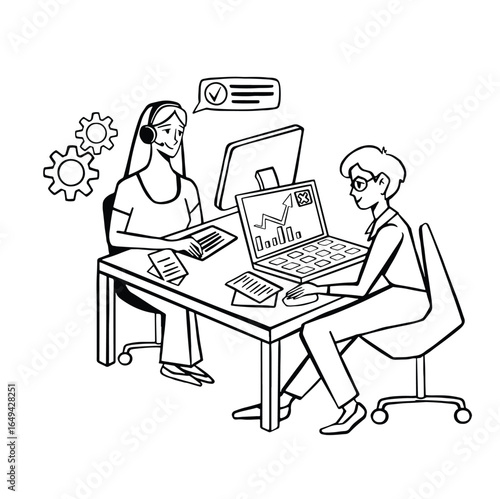 Work in the office on the computer line