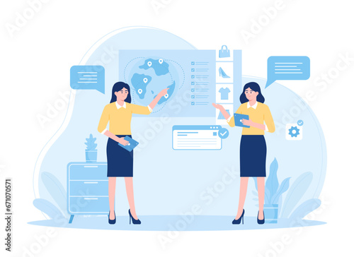 Worker analyzing digital data graph concept flat illustration