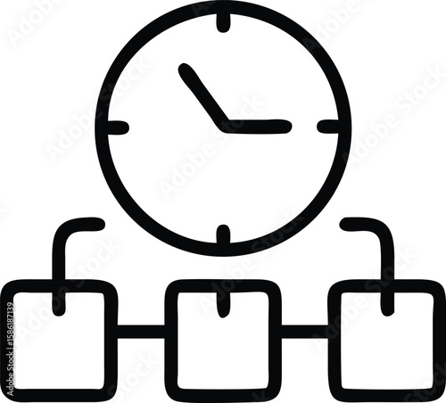 Workflow process icon featuring clock and diagram boxes for task scheduling
