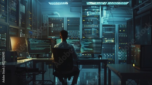 Working on a computer screen, an IT specialist is showing a code interface for a software program.