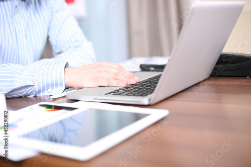 working on laptop, close up of hands of business man