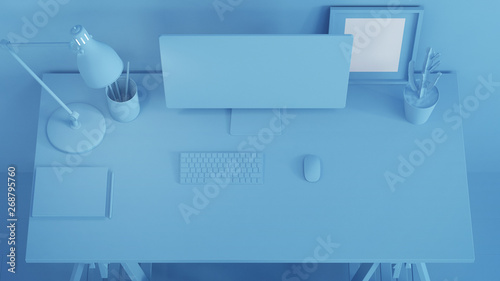 Workplace with a computer. Mockup. 3D rendering.