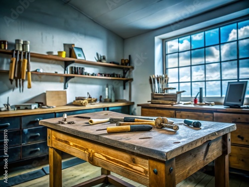 Workshop Tools on a Wooden Desk for Craftsmanship Inspiration