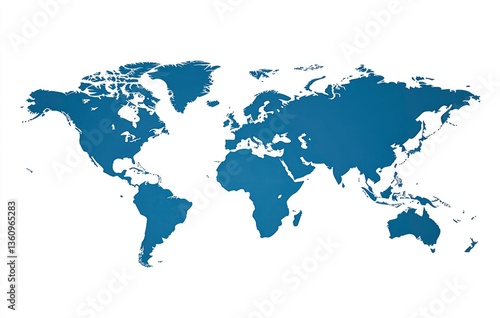 World Map Illustration in Blue Isolated on White Background