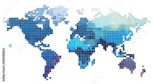 World map, pixelated, gradients