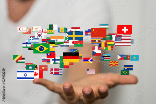 World map with all states and their flags