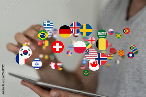 World map with all states and their flags,3d render.