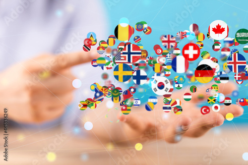 World map with all states and their flags,3d render.