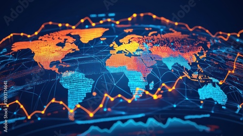 World Map with Network Connections and Data Flow Lines