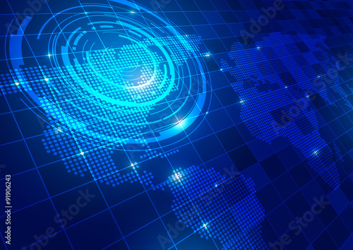 World Map with Technology Blue Background