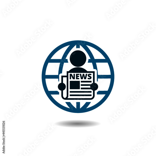 World news icon with shadow