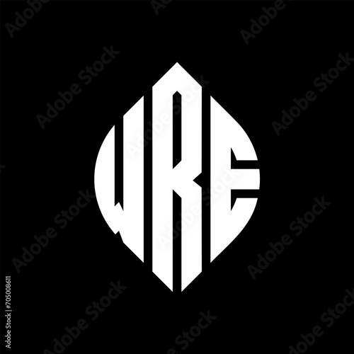 WRE circle letter logo design with circle and ellipse shape. WRE ellipse letters with typographic style. The three initials form a circle logo. WRE circle emblem abstract monogram letter mark vector.