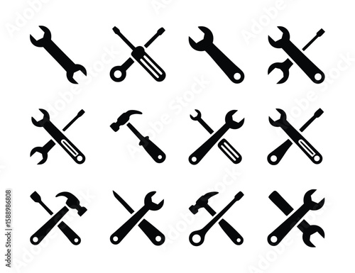Wrench Screwdriver Hammer Tools Icons Set