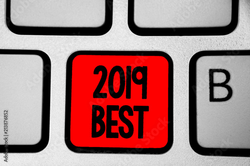 Writing note showing 2019 Best. Business photo showcasing Highest quality done in all fields preparing for the next year Keyboard red Intention create computer computing reflection document.