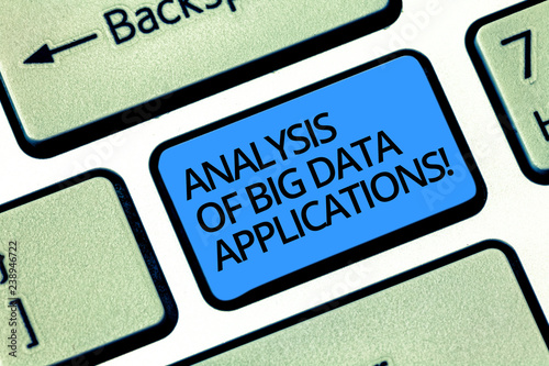 Writing note showing Analysis Of Big Data Applications. Business photo showcasing Information technologies modern apps Keyboard key Intention to create computer message pressing keypad idea