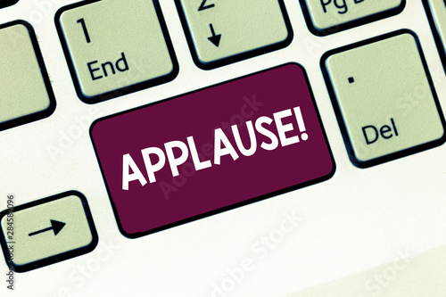 Writing note showing Applause. Business photo showcasing approval or praise expressed by clapping cheering whistling Keyboard Intention to create computer message keypad idea