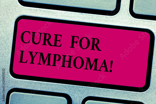Writing note showing Cure For Lymphoma. Business photo showcasing restore bone marrow by dose chemotherapy radiation therapy Keyboard key Intention to create computer message pressing keypad idea