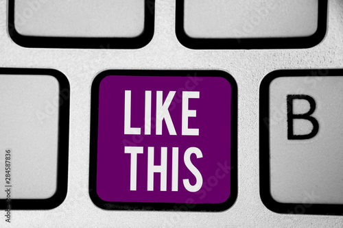 Writing note showing Like This. Business photo showcasing An action refering to something that needs to do the same as it is Keyboard purple key Intention computer computing reflection document