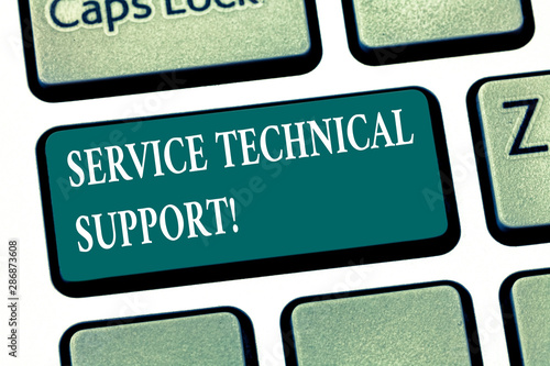 Writing note showing Service Technical Support. Business photo showcasing services that entities provide to users of product Keyboard key Intention to create computer message pressing keypad idea