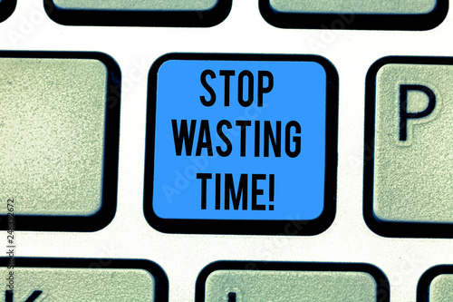 Writing note showing Stop Wasting Time. Business photo showcasing doing something that unnecessary does not produce benefit Keyboard key Intention to create computer message pressing keypad idea