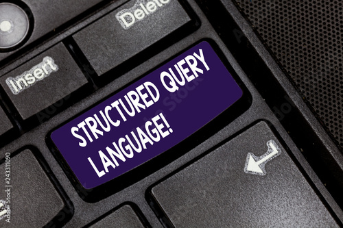 Writing note showing Structured Query Language. Business photo showcasing computer language for relational database Keyboard key Intention to create computer message pressing keypad idea