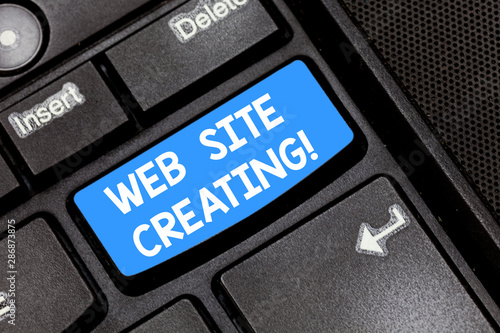 Writing note showing Web Site Creating. Business photo showcasing create site layout content production and graphic design Keyboard key Intention to create computer message pressing keypad idea