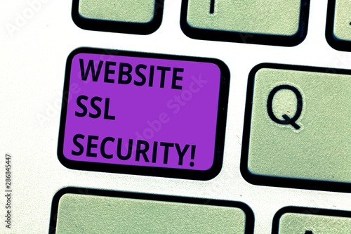 Writing note showing Website Ssl Security. Business photo showcasing encrypted link between a web server and a browser Keyboard key Intention to create computer message pressing keypad idea