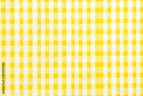 Yellow and White Checkered Fabric Texture Background Creates a Vibrant and Cheerful Pattern.