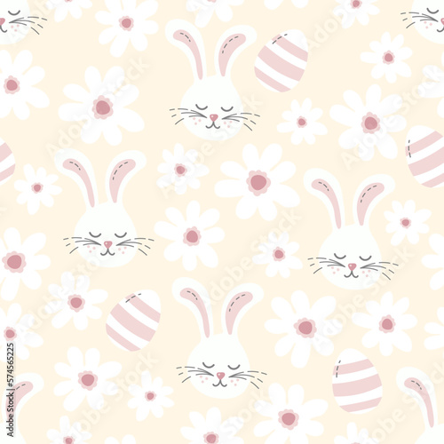 yellow easter pattern with cute easter bunnies and flowers vector