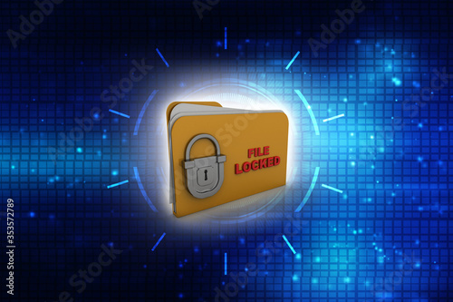 Yellow folder and lock. Data security concept. 3D rendering