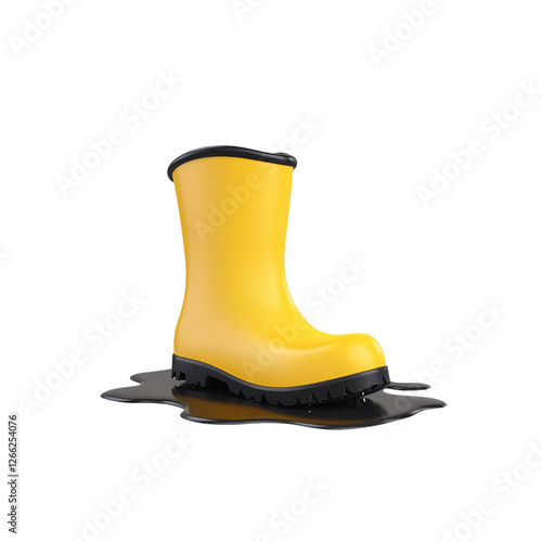 Yellow Rain Boots in Puddle: A single yellow rain boot stands in a puddle of water, its bright color contrasting with the gray background. The image evokes a sense of playfulness and fun.