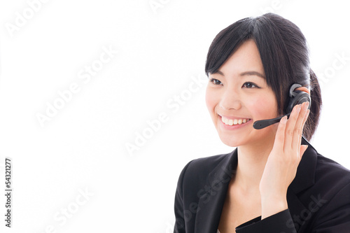young asian businesswoman with headset talking