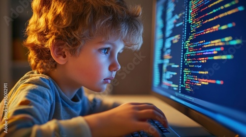 Young Boy Learning to Code on Computer