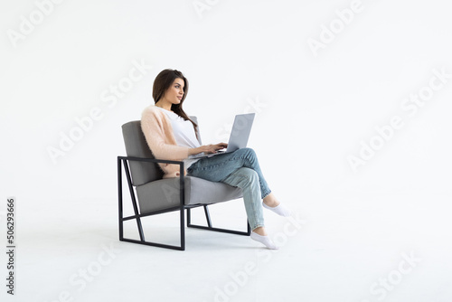 Young business woman with laptop isolated on white