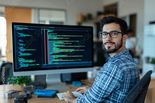 Young developer coding in a modern office environment