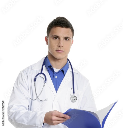 Young handsome doctor isolated on white