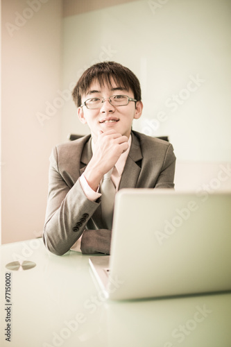 Young handsome man using laptop in his office