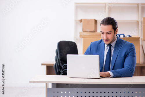 Young male employee in relocation concept