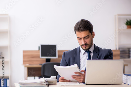 Young male employee sitting at workplace