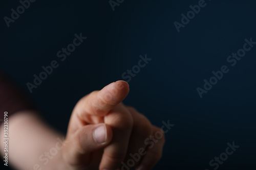 young man finger pointing touch