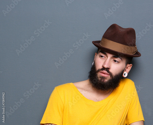 Young man with beard and piercings wearing hat