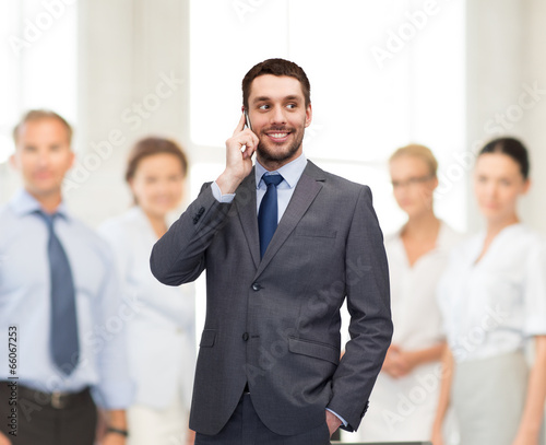 young smiling businessman with smartphone