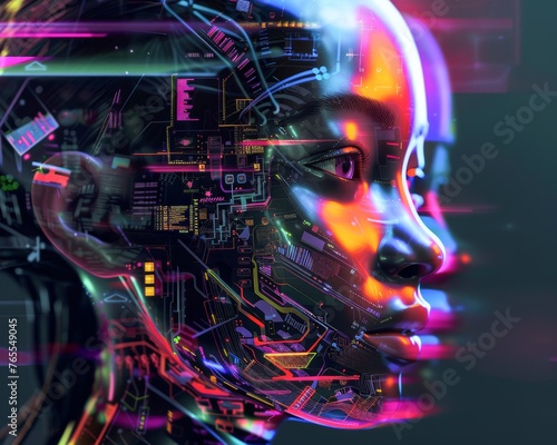 Youthful innocence portrayed through binary art of a childs face 3d render
