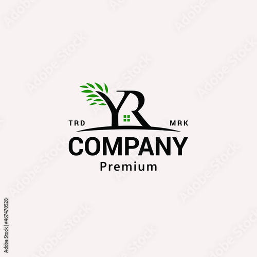 YR Letter Property House with Tree Logo Vector Icon Illustration