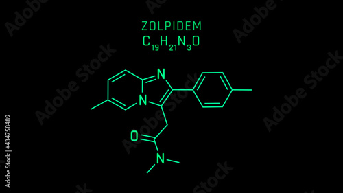 Zolpidem Molecular Structure Symbol Neon on black background