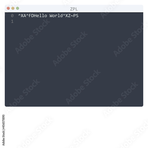 ZPL language Hello World program sample in editor window