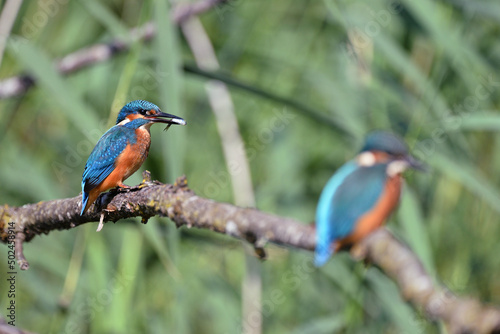 Zwei Eisvögel mit Fisch, two Kingfisher with fish