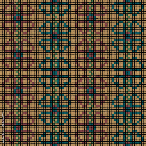 square frames of hand drawn pixels. vector seamless pattern. beige repetitive background. modern decorative art. geometric fabric swatch. embroidery template. textile design. home decor