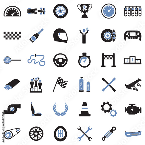 Racing Icons. Two Tone Flat Design. Vector Illustration.